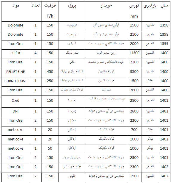 از ماشینهای مذکور به عنوان اختراع به ثبت رسیده است. لازم به ذکر است که این شرکت برای اولین بار در ایران موفق به طراحی، تدوین دانش فنی و ساخت دستگاه بارگیری مکانیزه مواد فله خشک درون کشتی شیپلودر موبایل (Mobile Ship-loader) گردیده که در حال حاضر دستگاه مذکور با موفقیت مورد استفاده قرار گرفته است.
